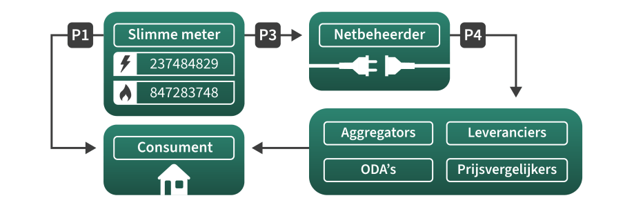 In de slimme meter zit een soort ingebouwde mobiele telefoon (de P3-poort) die de meterstanden doorgeeft aan uw netbeheerder. Daar worden ze opgeslagen op een server. Deze server wordt de P4-poort genoemd.