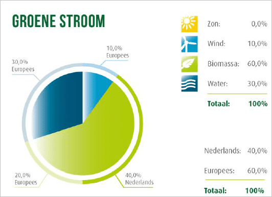 Was in 2005 nog zestig procent van het aanbod grijs, inmiddels is dit aandeel gedaald naar dertig procent. Gas is het onderdeel wat gehalveerd is en wind heeft deze plaats nu ingenomen. Dit is met name te danken aan vergroening van het stroomaanbod in Nederland, maar ook aan een gunstige importmarkt. Samen met waterkracht en biomassa vormen deze onderdelen het grootste deel van het stroomaanbod. Nederland bezit zelf maar een paar waterkrachtcentrales en het meeste wordt dan ook uit het buitenland geïmporteerd. Main Energie, Oxxio en Qwint hebben de meeste waterkracht op het stroometiket staan.