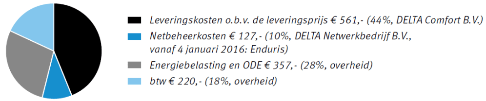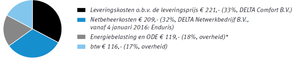 Kostenverdeling gas 1800 m³ en elektriciteit 3500 kWh (bron: Delta)