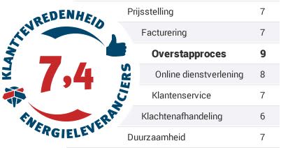 tevreden zij zijn over hun nieuwe energieleverancier voor wat betreft prijsstelling, facturering, overstapproces, online dienstverlening, klantenservice, klachtenafhandeling en duurzaamheid. Deze rapportcijfers zijn terug te vinden bij de leverancierswaardering in onze Energievergelijker onder 'geverifieerde beoordelingen door overstappers'.