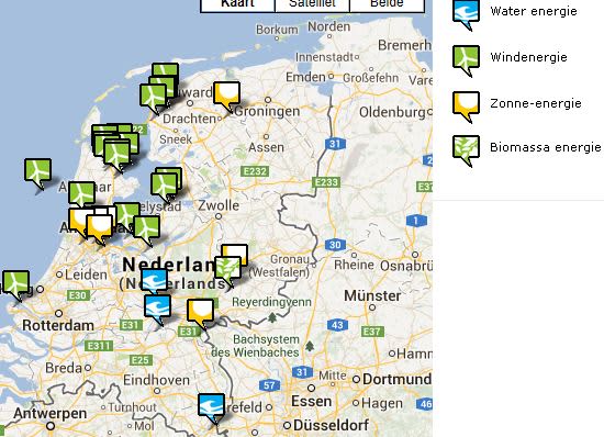 Op dit moment is het overigens niet meer mogelijk een Natuurstroomcontract af te sluiten. Mensen die duurzame energie willen, kunnen kiezen voor Nuon CO2 OK Stroom en gas. Op onderstaande kaart ziet u waar Nuon's duurzame energiebronnen staan.