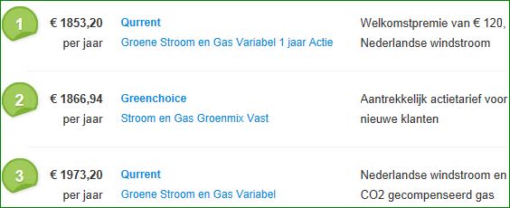 Qurrent staat al een tijdje met het voordeligste aanbod op Gaslicht.com in de TOP 5 duurzame energie. Het betreft een zeer goedkoop maandelijks opzegbaar contract, met tarieven die per kwartaal kunnen wijzigen en een korting van 120 euro als men minstens een jaar bij Qurrent blijft.