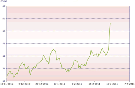 Als laatste besloot bondskanselier Angela Merkel zeven kerncentrales te sluiten in Duitsland voor minimaal drie maanden. Deze centrales zijn verantwoordelijk voor 35 procent van de kernenergie in Duitsland. Al deze ontwikkelingen samen zorgen voor onrust in de markt, waardoor de stroomprijzen flink oplopen.