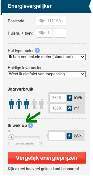 In onze Energievergelijker vult u uw energieverbruik in en de opbrengst van uw zonnepanelen. Als u de opbrengst niet weet of nog overweegt om zonnepanelen aan te schaffen, kunt u ook het aantal zonnepanelen selecteren. Dan rekent de Energievergelijker met een gemiddelde. Vervolgens ziet u in één oogopslag welk energiecontract het meest voordelig is voor u.
